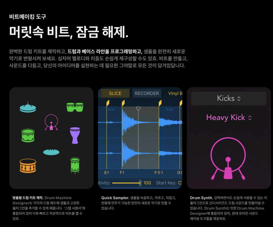 이번달 1월 29일, 애플의 크리에이터 제품군으로 묶여서 로직프로가 업데이트 됩니다.
