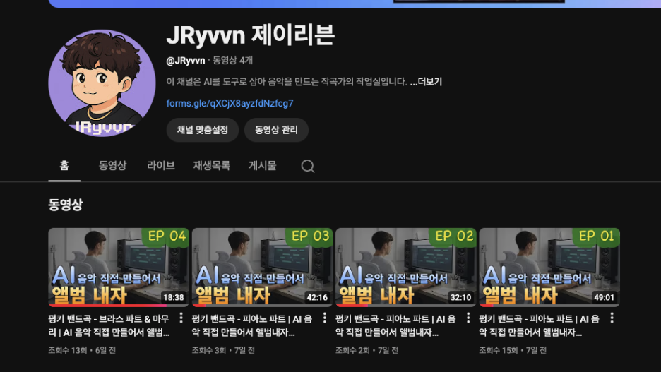 #유튜브시작 #제이리븐 #JRyvvn #음악제작 #비트메이킹 #조회수분석 #시청자패턴 #결과중심 #완성본선호 #음악작업과정 #라이브스트리밍 #편집영상 #힙합비트 #EDM #알앤비 #밴드곡 #아이돌음악 #플러그인리뷰 #가상악기 #비교영상 #음악채널 #프로듀서 #신인유튜버 #구독자0명 #첫영상 #마지막영상 #유입분석 #과정vs결과 #편집공부 #성장기록 #음악유튜버 #비트프로듀서 #작업영상 #음악제작툴 #DAW #사운드디자인 #믹싱마스터링 #음악작업실 #유튜브전략 #컨텐츠기획